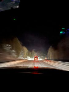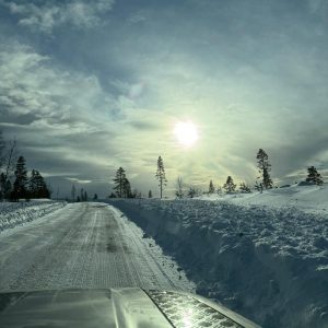 In het donker kan het zijn dat je zo rijdt. Tijdens de reis zie je ook prachtige landschappen. Het is een plaatje om te zien, zeker in de sneeuw en met zon!